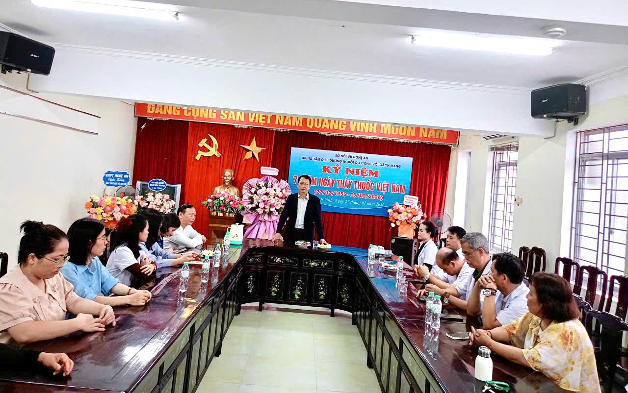 Sáng ngày 27/02/2026, nhân kỷ niệm 71 năm Ngày Thầy thuốc Việt Nam (27/02/1955 - 27/02/2026), Trung tâm Điều dưỡng Người có công với cách mạng tỉnh Nghệ An vinh dự đón Đoàn công tác Sở Nội vụ tỉnh Nghệ An do đồng chí Vi Ngọc Quỳnh – Phó Bí thư Đảng ủy, Phó Giám đốc Sở Nội vụ làm Trưởng đoàn đến thăm, tặng quà và chúc mừng Trung tâm.